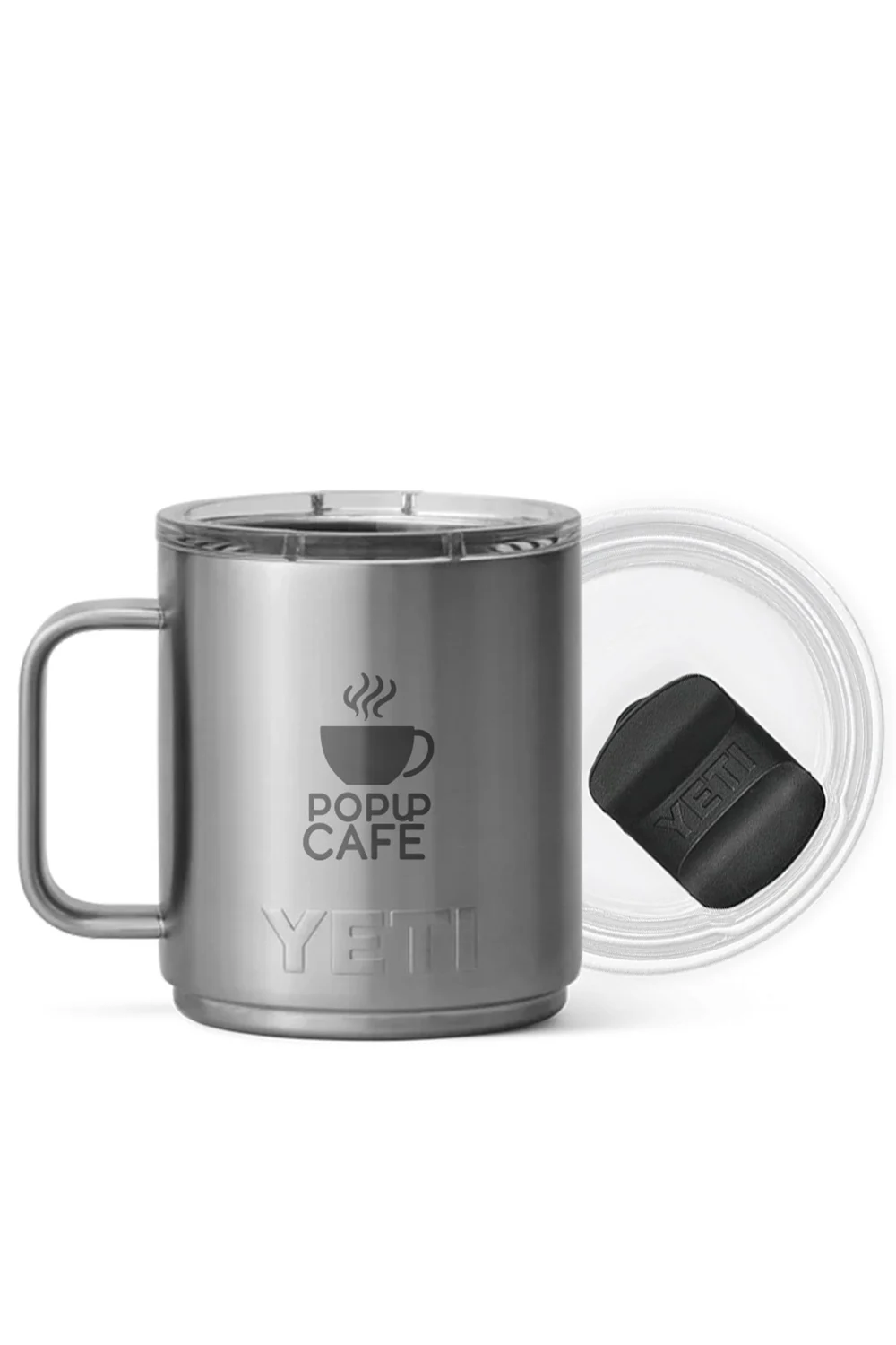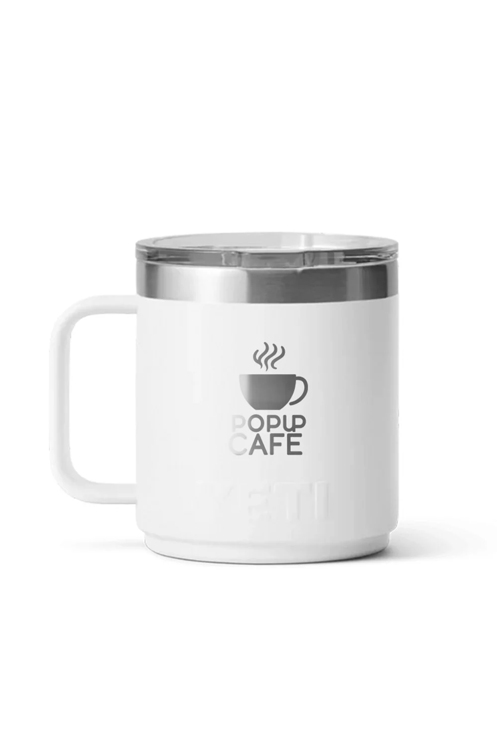 Whether you’re enjoying your morning brew at home or sipping fireside on your next getaway, this rugged little mug is up for anything. The Popup Cafe logo is laser engraved (Stainless Steel options will engrave black), offering a sleek, durable finish that won’t fade — even with everyday use.